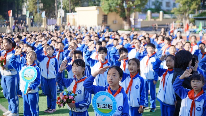 10月24日上午,隨著激昂的運動員進行曲響徹校園,附屬中學全體師生齊聚運動場,在莊嚴的升旗儀式中拉開序幕。全校師生面向鮮艷的五星紅旗,高唱國歌,表達對祖國的無限熱愛與崇高敬意。