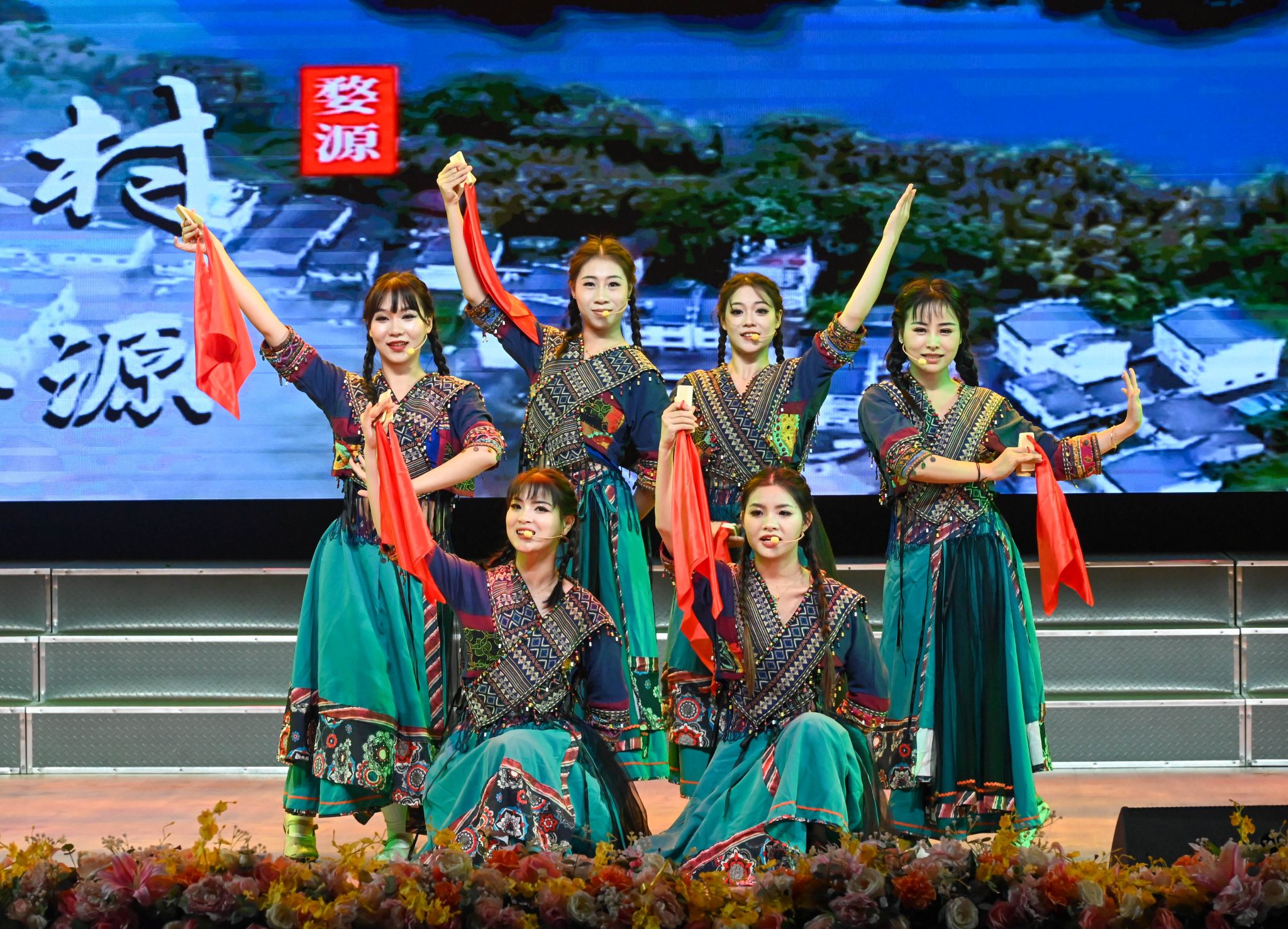 演出在婺源民歌《四季花開》中拉開序幕。笛子演奏《揚鞭催馬運糧忙》、音樂快板《禮贊石門新氣象》、蕭演奏《綠水青山美》、吉他彈唱《石門小客棧》、雙人舞《藍冠噪鹛落石門的傳說》、婺源徽劇《貴妃醉酒》、男女生對唱《婺源美》、群舞《長安三萬里》等表演,為藍冠噪鹛注入了藝術元素,古樸悠揚的旋律,讓現場觀眾領略到藍冠噪鹛對婺源美好生態(tài)的眷戀,優(yōu)美動人的舞蹈,譜寫了生態(tài)和諧的樂章,展現了人與自然和諧共生的美好畫面。