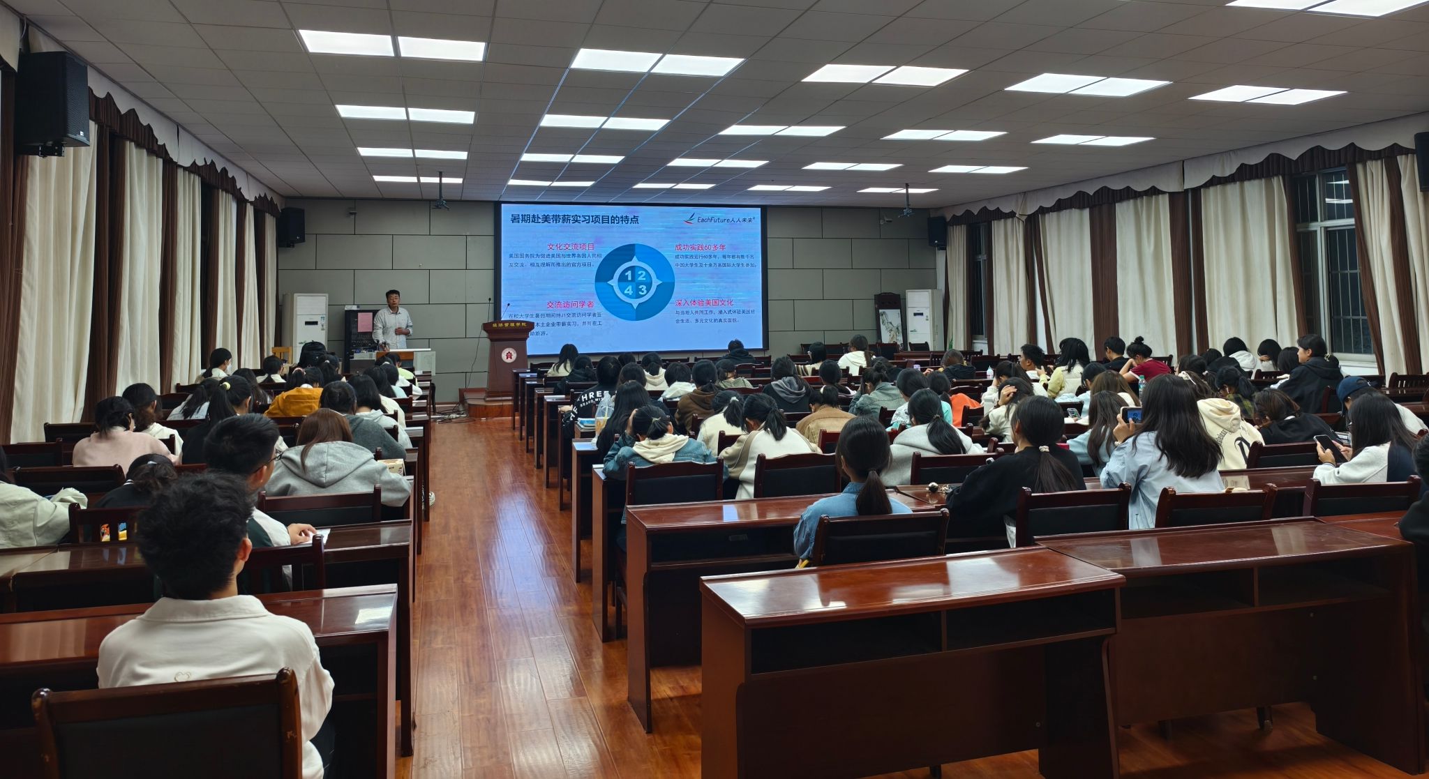 此次宣講會的舉辦,不僅讓我校學生對大學生暑期赴美工作旅行項目有了更加全面和深入的了解,也激發(fā)了他們走出國門、拓展視野的強烈愿望。
