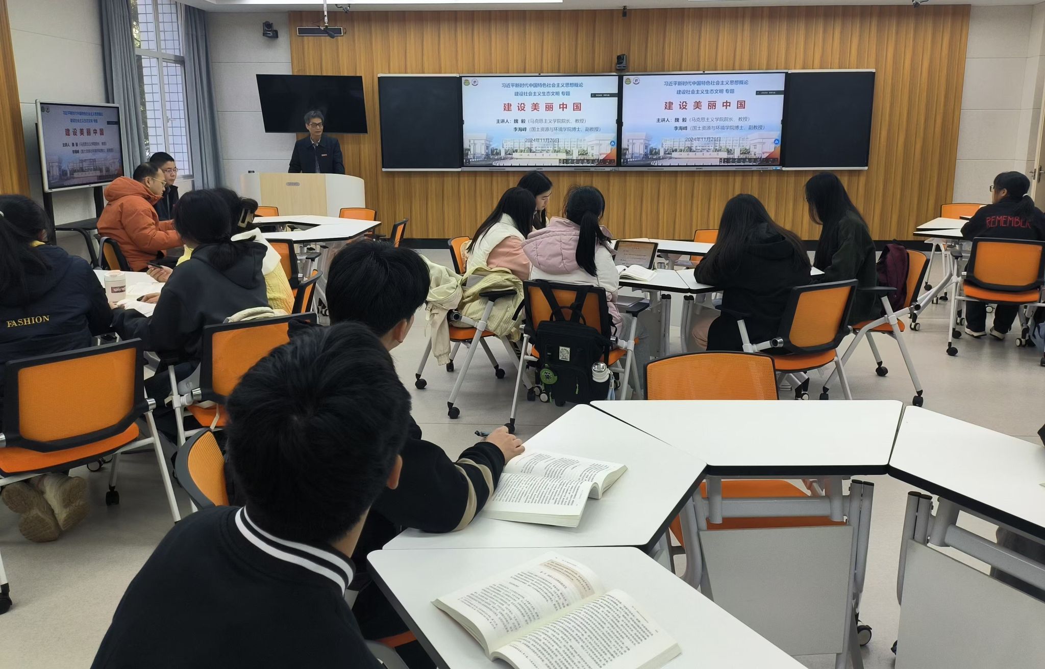 11月26日下午,《習近平新時代中國特色社會主義思想概論》課程第九講開講。馬克思主義學院魏毅教授、國土資源與環境學院副教授李海峰博士共同講授“建設美麗中國”專題。