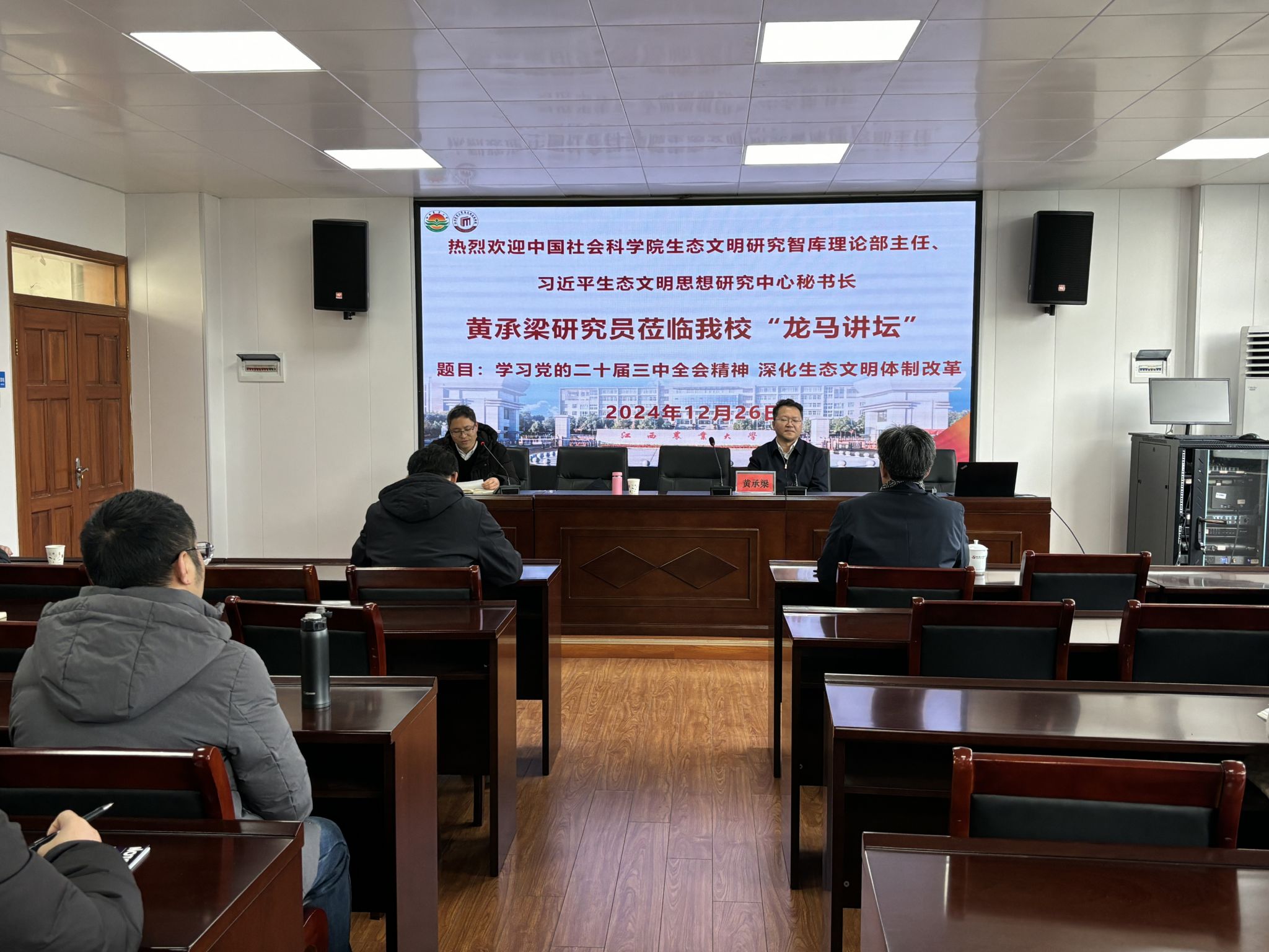 12月26日下午,馬克思主義學(xué)院邀請(qǐng)中國(guó)社會(huì)科學(xué)院生態(tài)文明研究智庫(kù)理論部主任、中國(guó)社會(huì)科學(xué)院習(xí)近平生態(tài)文明思想研究中心秘書長(zhǎng)做客我校第四期“龍馬講壇”,學(xué)院師生參加報(bào)告會(huì)。
