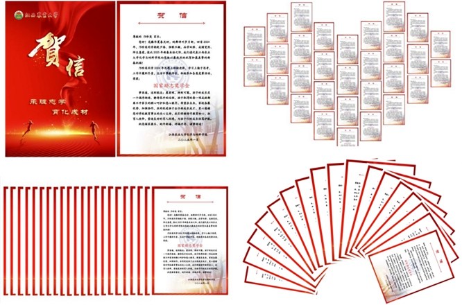 學院高度重視本次活動,精心撰寫學生表現、未來展望和新春祝福等賀信內容,共寄出賀信46封,每一封賀信都承載著學院對學子胸懷理想、潛心治學、勤勉篤行的肯定,是學子榮譽的象征、成長的見證、努力的回報,進一步健全了家校溝通平臺,增進家校育人共識,凝聚家校育人合力。“學院的賀信讓我備受鼓舞,我要堅定理想信念,接續創造新的業績,成為可堪大任的社會主義建設者和接班人。”保研至四川大學的材料2101班胡文濤說道。應化2304班任藝家長表示,榮譽不僅是孩子努力的結果,更離不開學校學院全體老師悉心教育和培養,將繼續加強與學校的聯動,共同為孩子成長保駕護航。