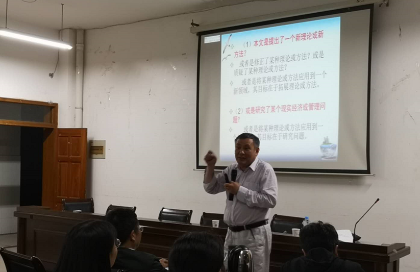 報告中,李金華教授結合自身多年來擔任《數量經濟技術經濟研究》期刊主編審稿和自己論文寫作創作經驗,就經濟管理類論文題目如何設計、如何選題、如何寫作與投稿等幾個方面從不同角度發表自己獨特的見解。李教授的報告內容豐富,重點突出,指導性強,讓現場聆聽的師生深受啟發,大家對此次報告稱贊有加。